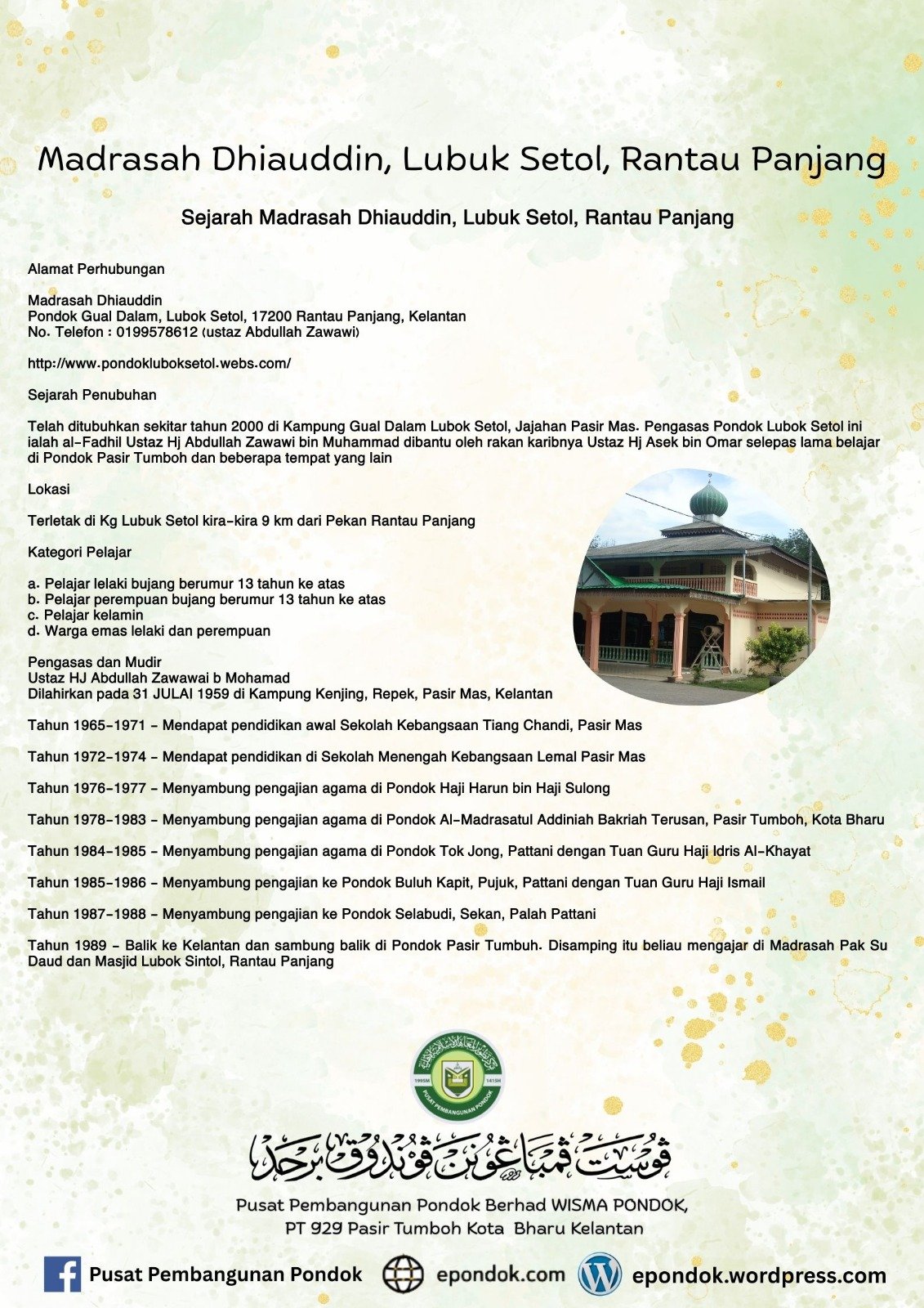 Pondok Kelantan Pondok Malaysia Pondok Lubok Setol, Rantau Panjang epondok April 16, 2026 (Last updated: April 16, 2026) 0 comments About the Author epondok Administrator Visit Website View All Posts Post navigation Previous: Tuan Guru Hj Muhammad Pengasas Pondok Beta HilirNext: Pondok Gelang Mas, Pasir Mas Tinggalkan Balasan Batal balasanAlamat e-mel anda tidak akan disiarkan. Medan diperlukan ditanda dengan *Ulasan * Nama * Emel * Laman sesawang Simpan nama, emel, dan laman web saya dalam pelayar ini apabila saya mengulas pada masa hadapan. Artikel Berkaitan Pondok Kelantan Pondok Malaysia Maklumat Pondok Kelantan – 5 epondok April 19, 2026 0 Pondok Kelantan Pondok Malaysia Maklumat Pondok Kelantan – 4 epondok April 19, 2026 0 Pondok Kelantan Pondok Malaysia Maklumat Pondok Kelantan – 3 epondok April 19, 2026 0
